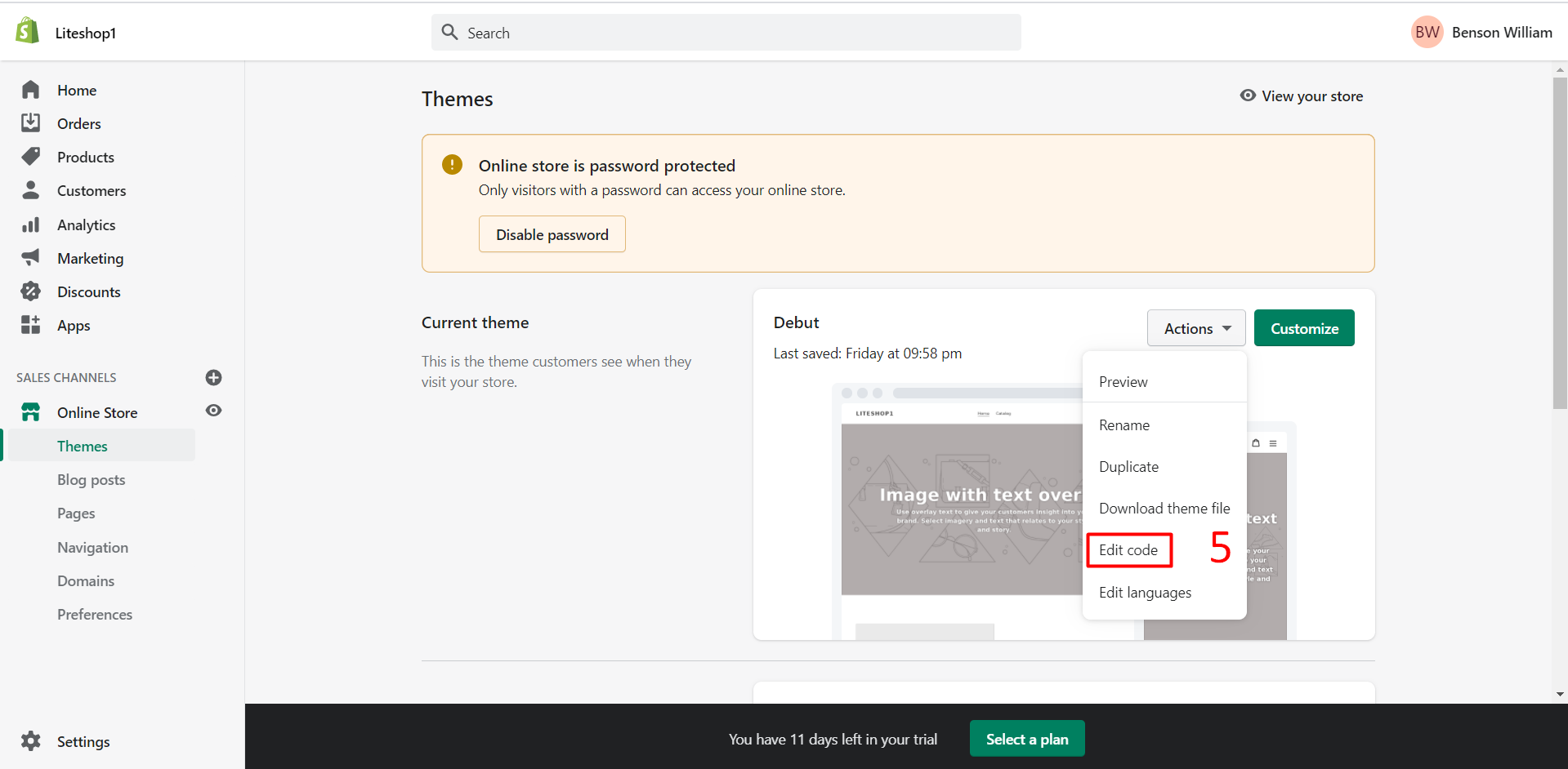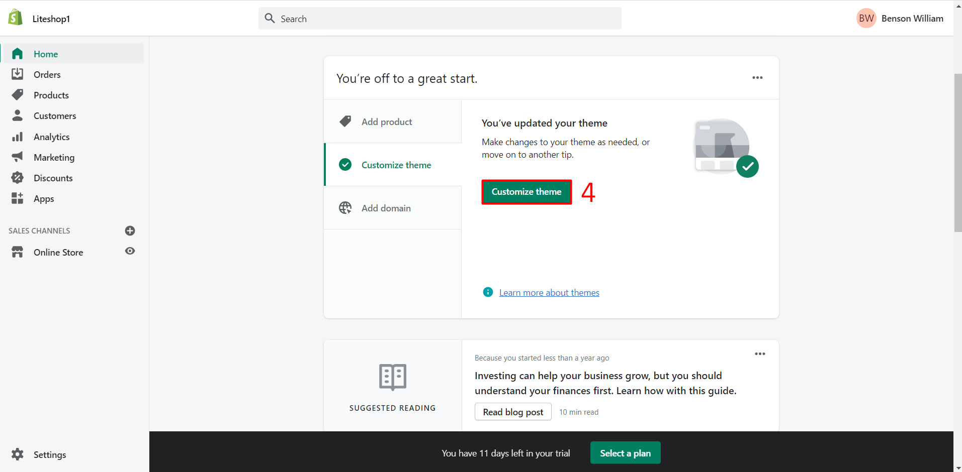 Step 4 – Login to Shopify admin. Click on “Customize theme”