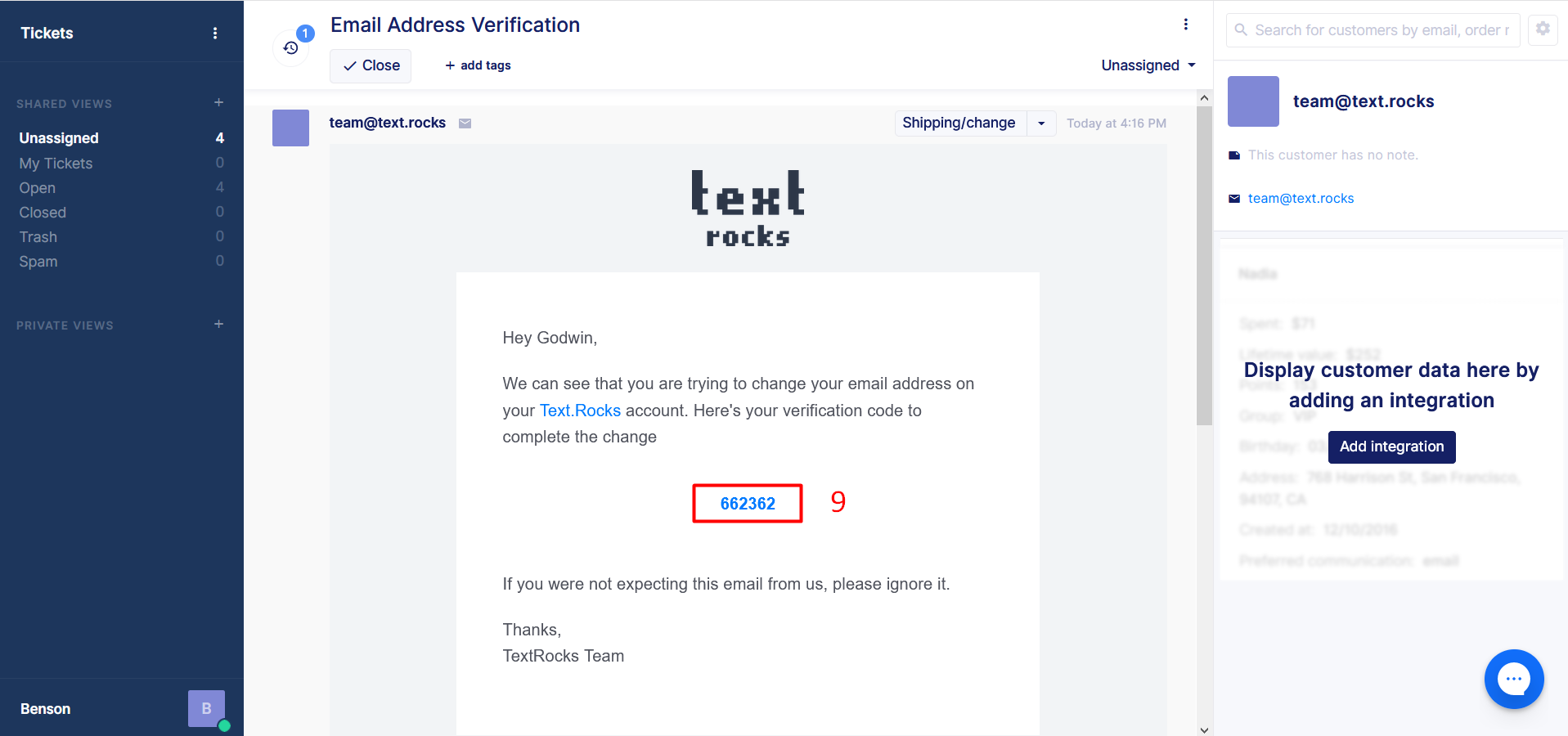 Step 9 – You will receive a 6 digit verification code on Gorgias Inbox.
