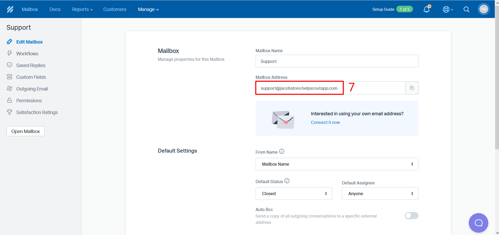 Step 7 – On the right side, You can see the Help Scout support email.