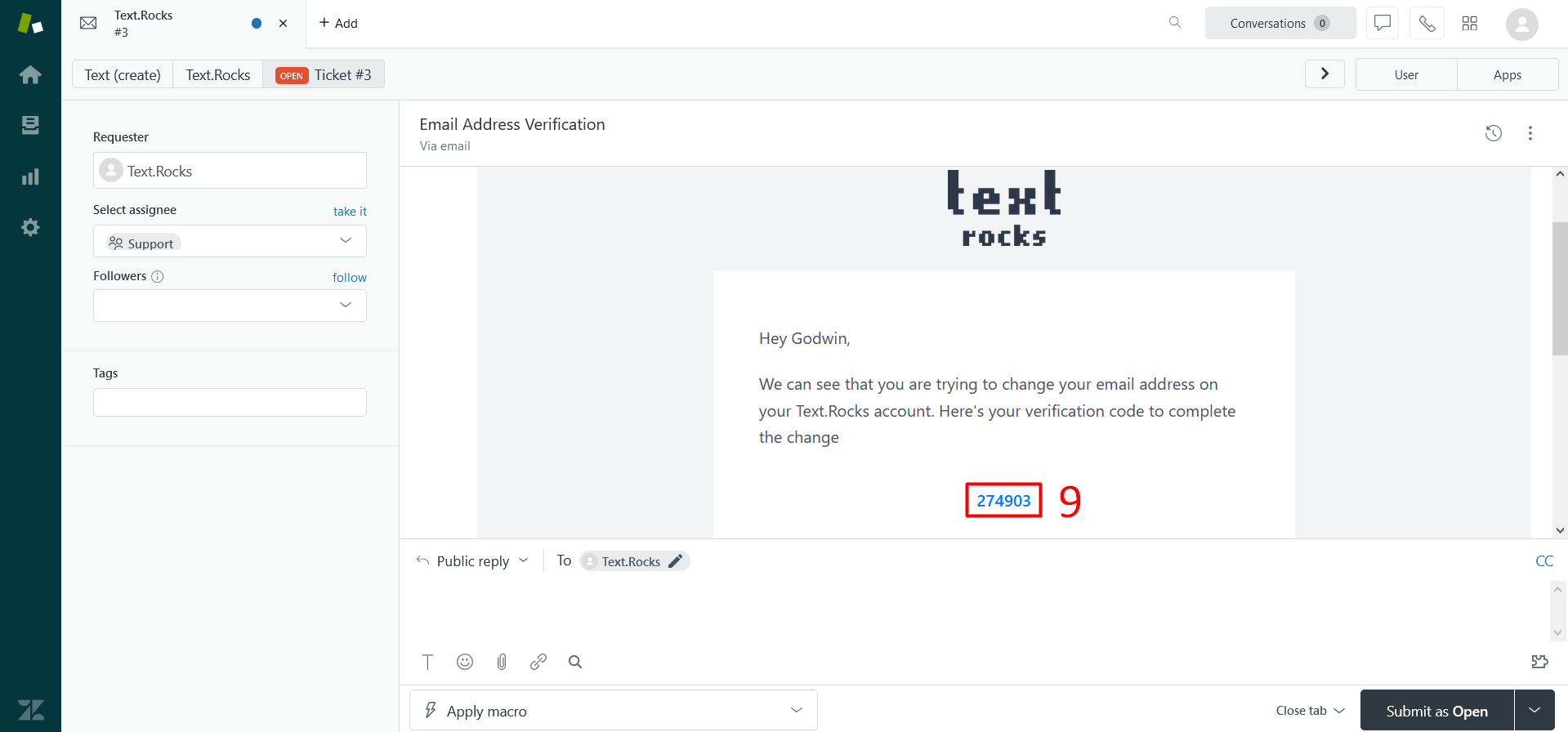 Step 9 – You can receive verification code on Zendesk.
