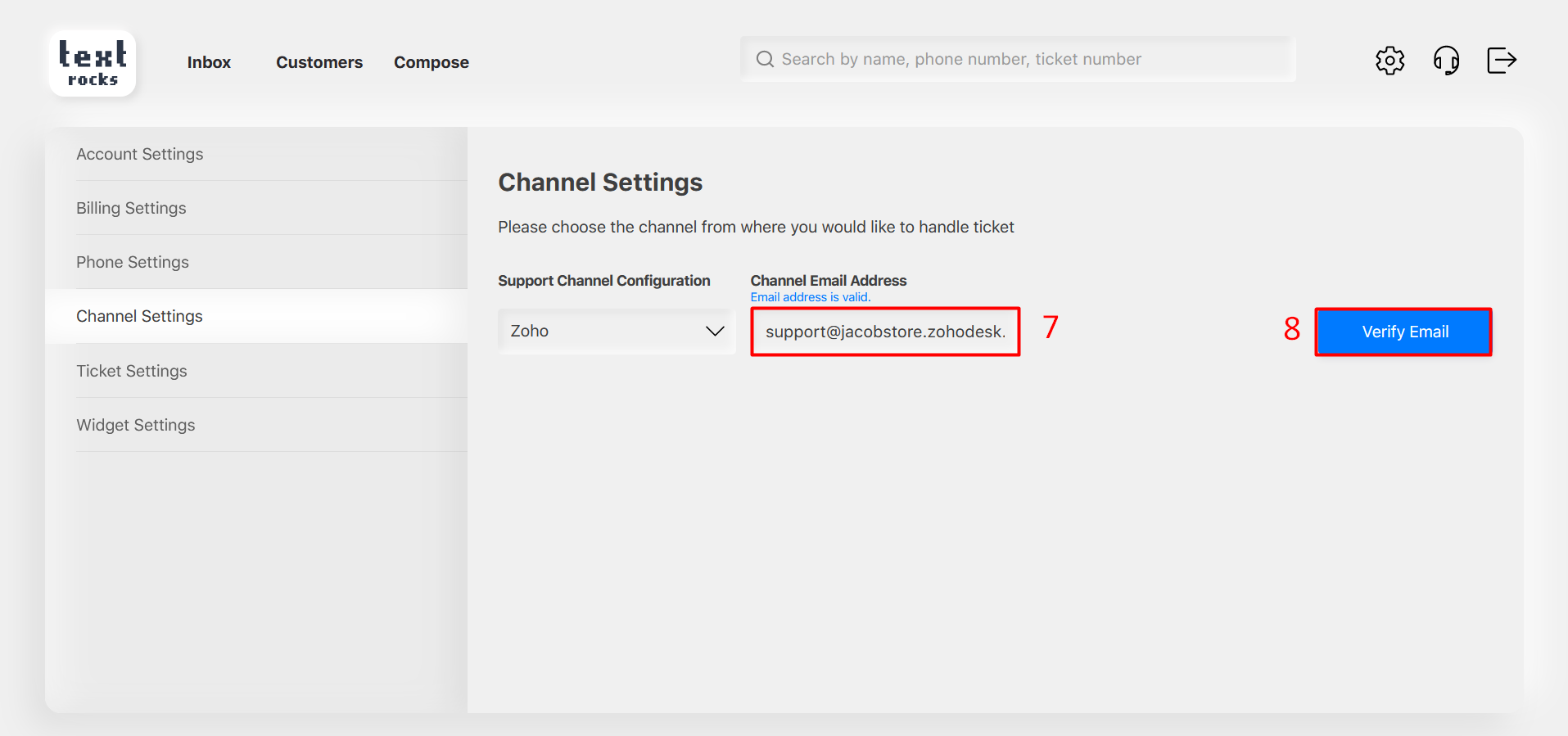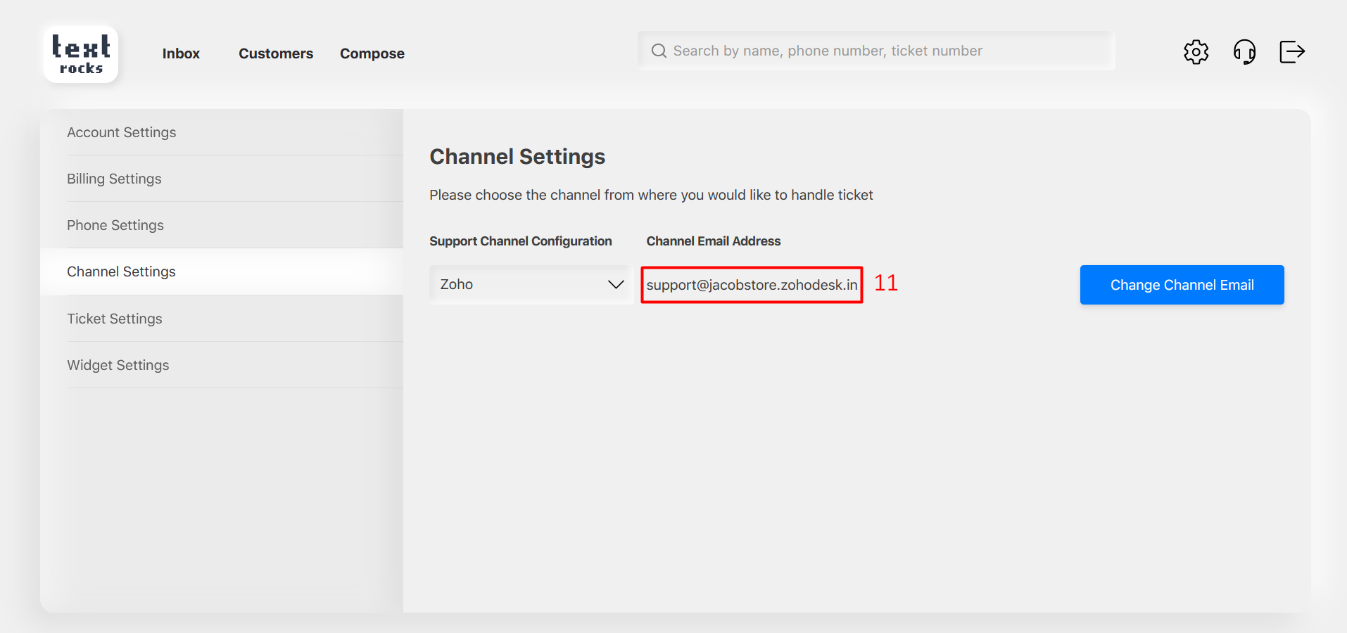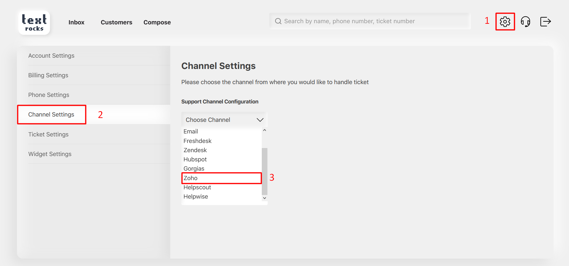 Step 3 – Select “Zoho” helpdesk from the support channel dropdown list.