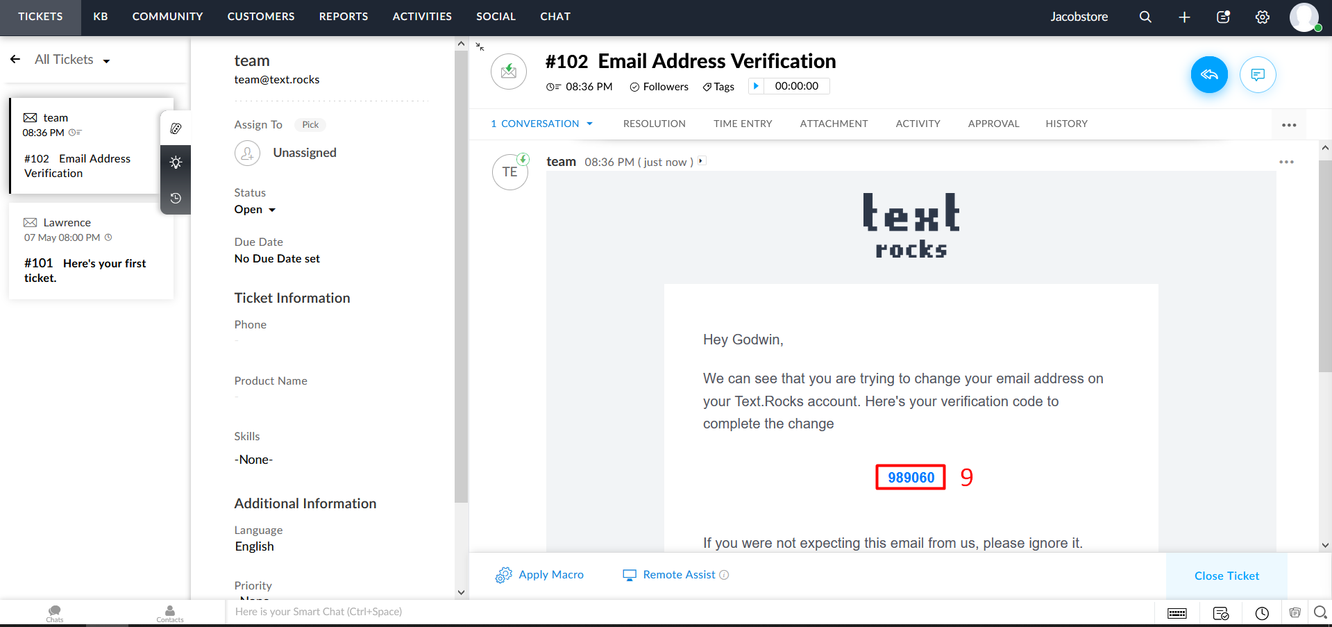 Step 9 – You can receive verification code on Zoho desk.